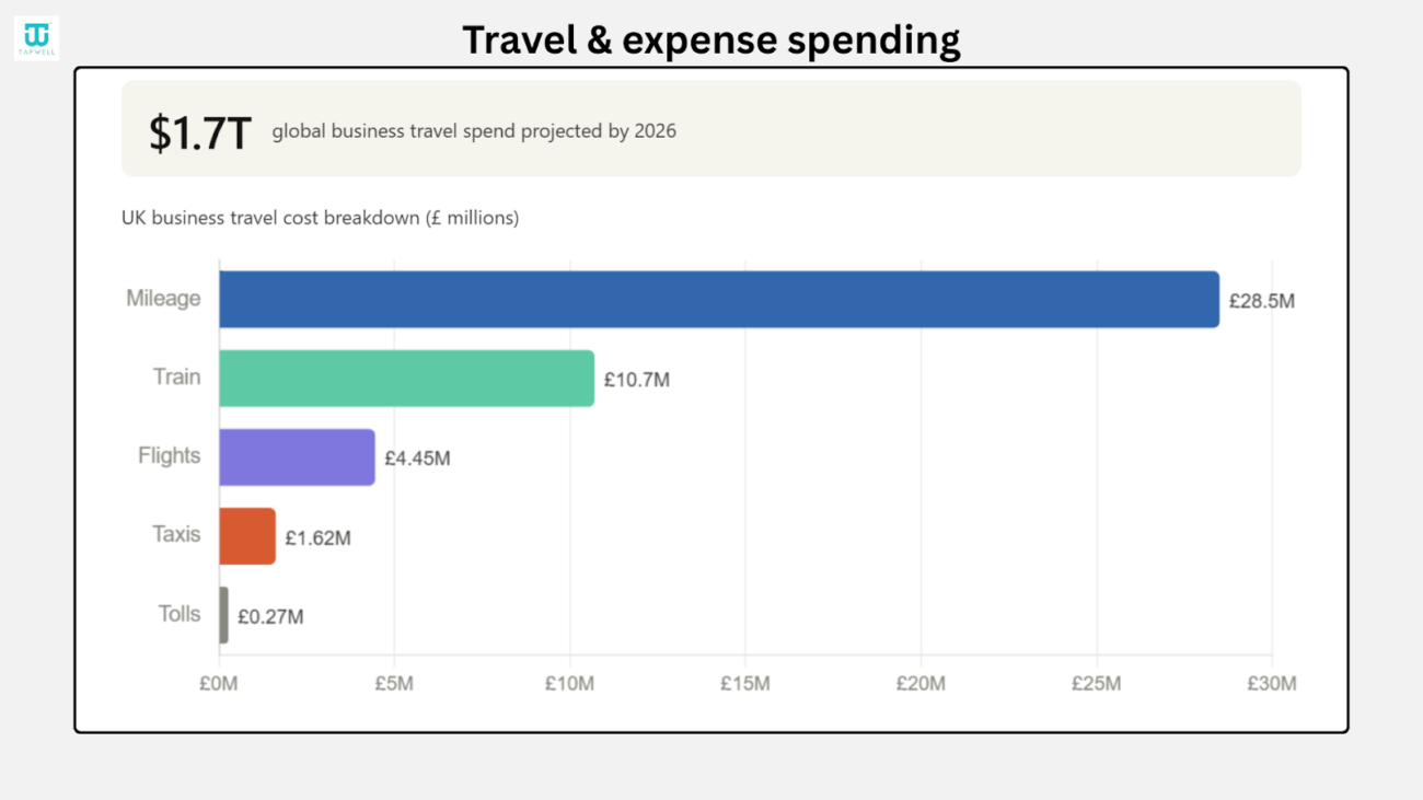 - Companies spent £28.5 million on mileage, which highlights the cost of employee travel by road.
