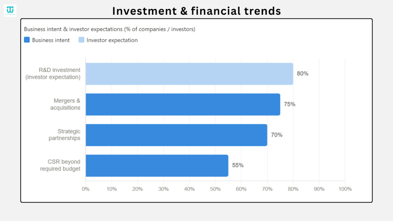 - 80% of investors expect higher spending on research and development as companies focus on innovation.