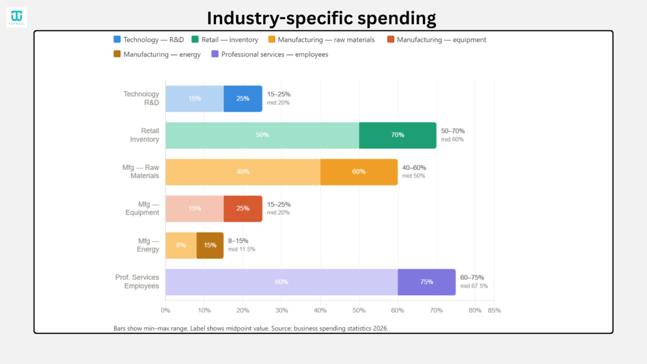 Spending patterns change based on the type of business. Each industry focuses on different cost areas depending on its operations. This helps companies manage resources based on their needs and priorities.