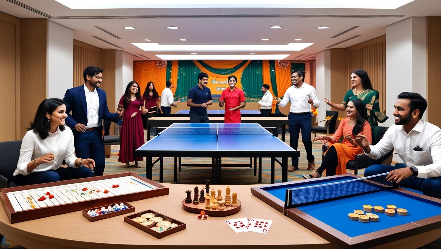 An indoor game day turns the office into a playful space. Classic games like carrom, table tennis, chess, or cards help everyone unwind and bond.