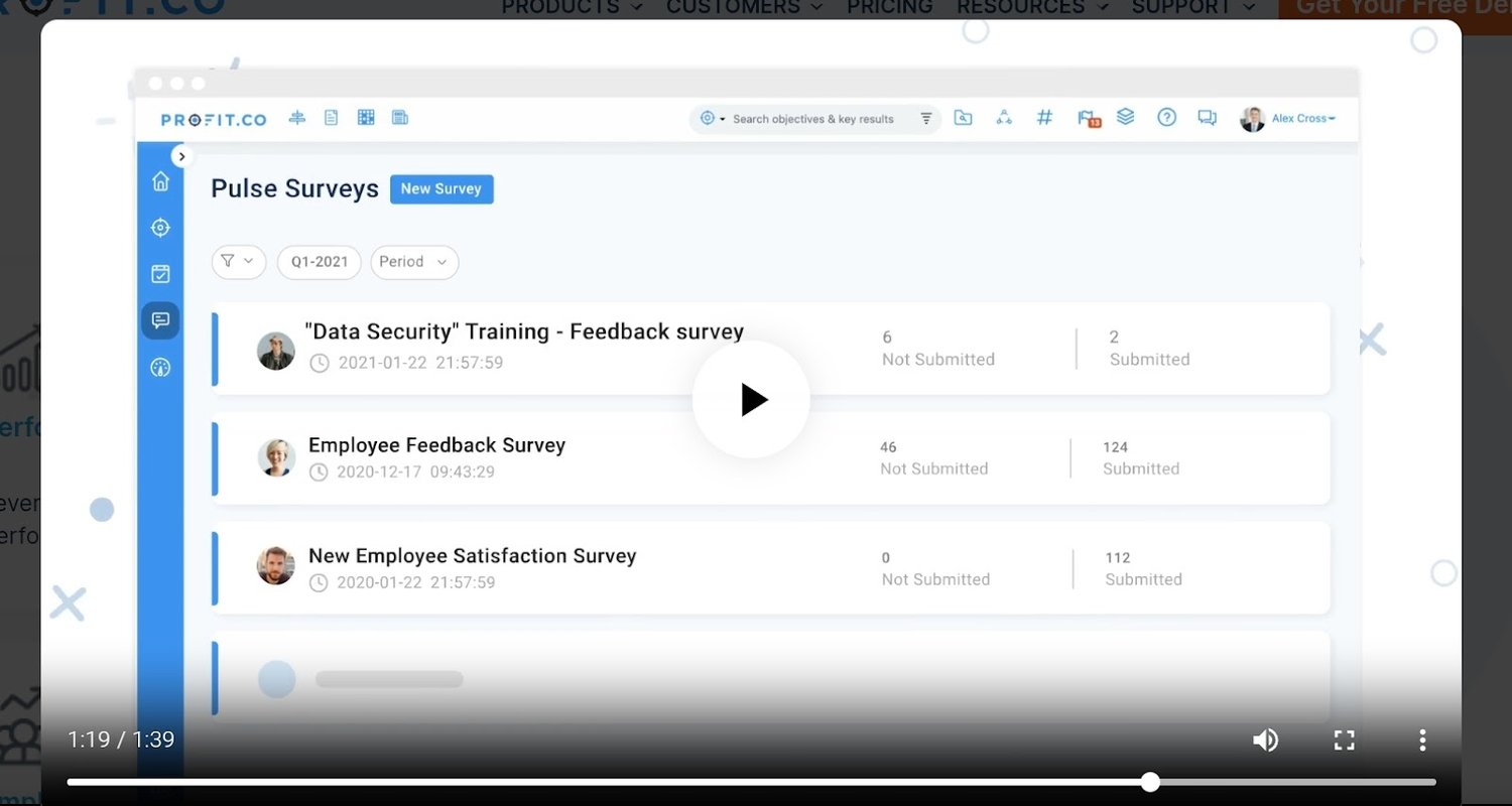 - Profit.co – Best for encouraging teamwork through rewards and surveys
