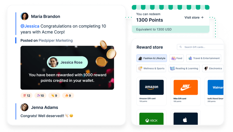 Best use for: Boosting employee engagement with AI-powered recognition, rewards, and feedback