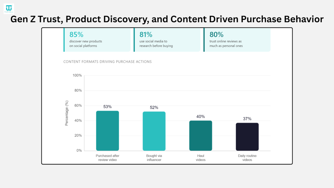 - Visual content formats also influence buying, including haul videos (40%) and lifestyle based content like daily routine videos (37%).