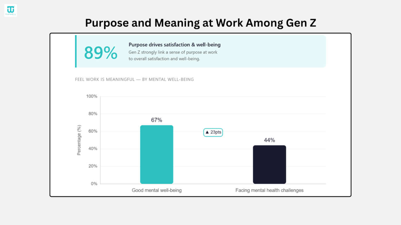 - 67% of Gen Z with good mental well-being feel their work is meaningful, compared to 44% among those facing mental health challenges.