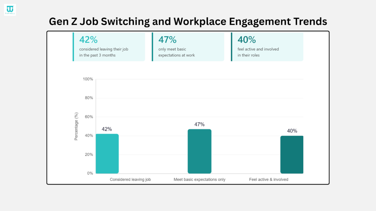- 42% of Gen Z have considered leaving their job within the past three months, showing a higher tendency to switch roles compared to older generations.