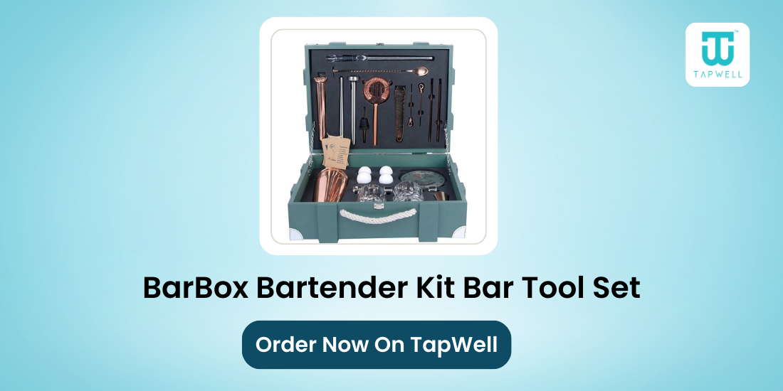 This complete bar tool set comes neatly packaged in a military green wooden crate box, making it a stylish and premium addition to any home bar. It includes a 500ml cocktail shaker, 2 crystal whiskey glasses, a wine chiller stick, 2 beer chiller sticks, a bar spoon, a muddler, and many other essential items for mixing the perfect drink.