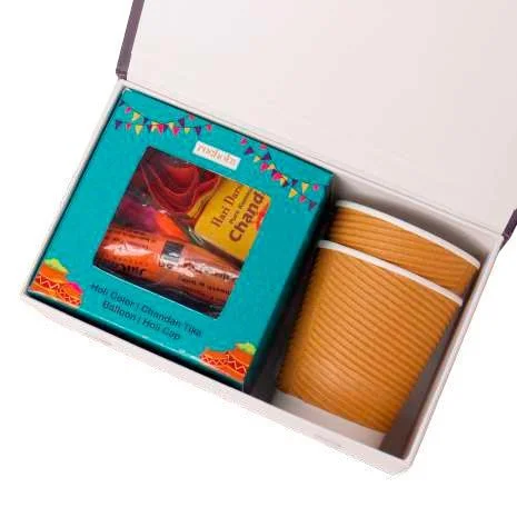 This gift creates a complete Holi experience at the workplace. Employees can apply tika, wear caps, play with colors, and enjoy thandai together. It builds team spirit and adds energy to office celebrations without crossing budget limits. The box looks festive and is easy to distribute in bulk.