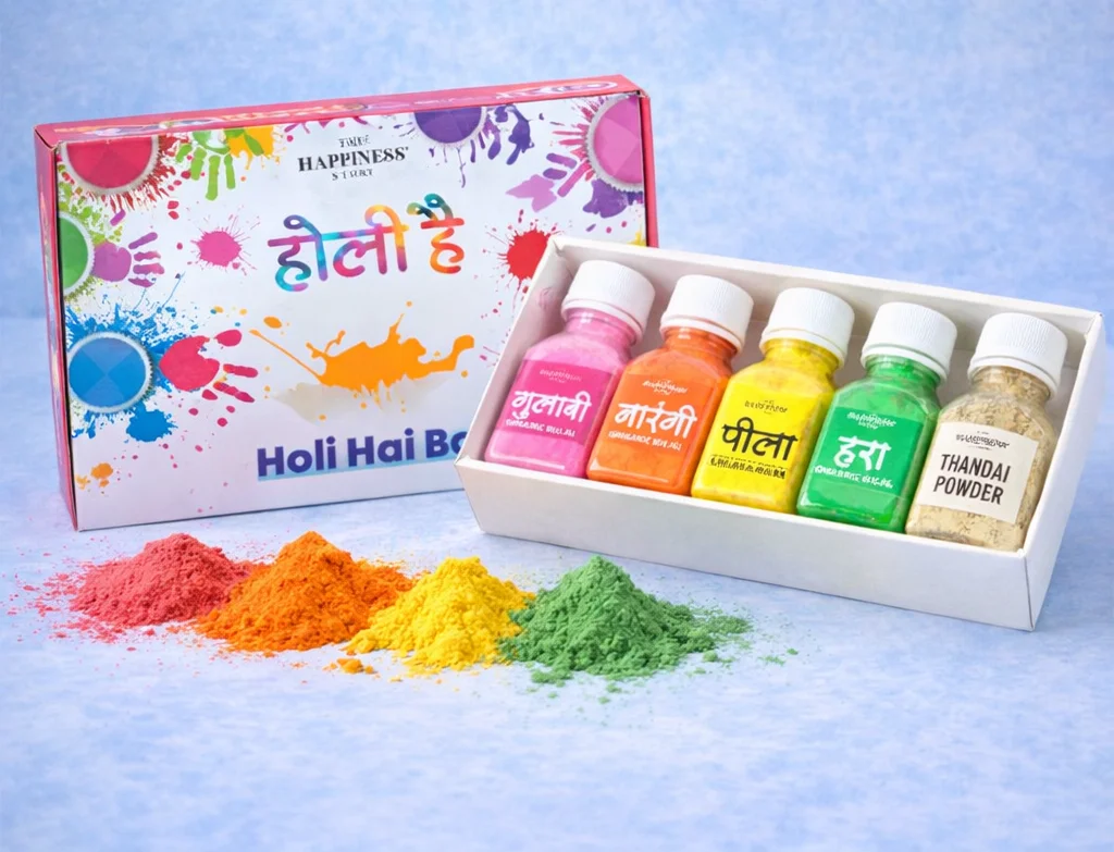 This gift brings both color and refreshment to workplace celebrations. Teams can apply safe colors and share thandai during office gatherings. It creates a cheerful atmosphere and encourages team bonding. It is a practical and budget-friendly Holi gift for employees.