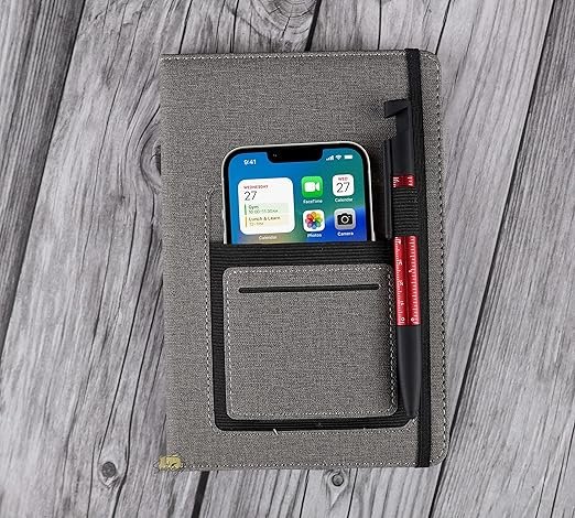 A5 Notebook with Mobile Pocket, Card Holder Pocket & Pen Loop