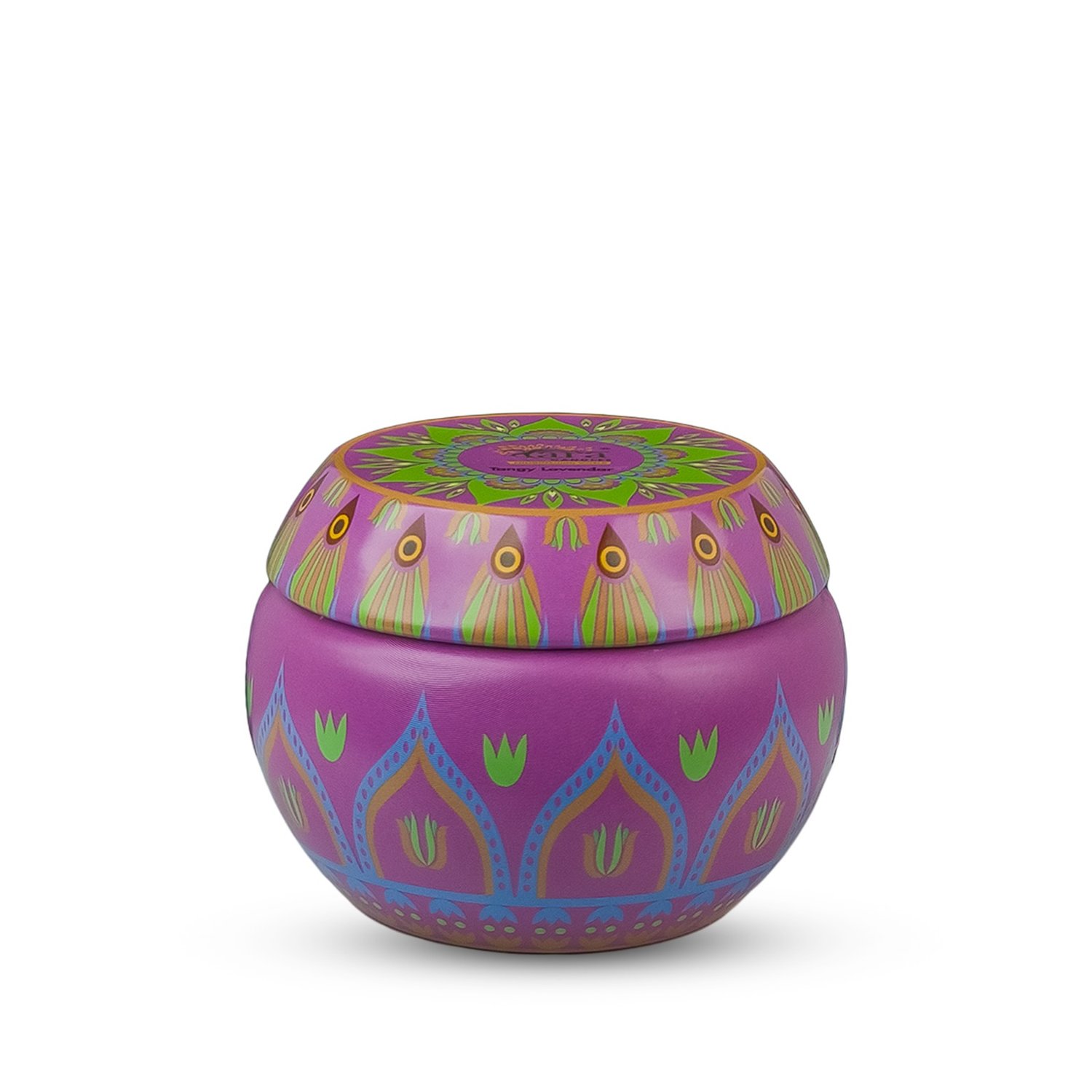 - Designer scented candle jar with vibrant ethnic motifs