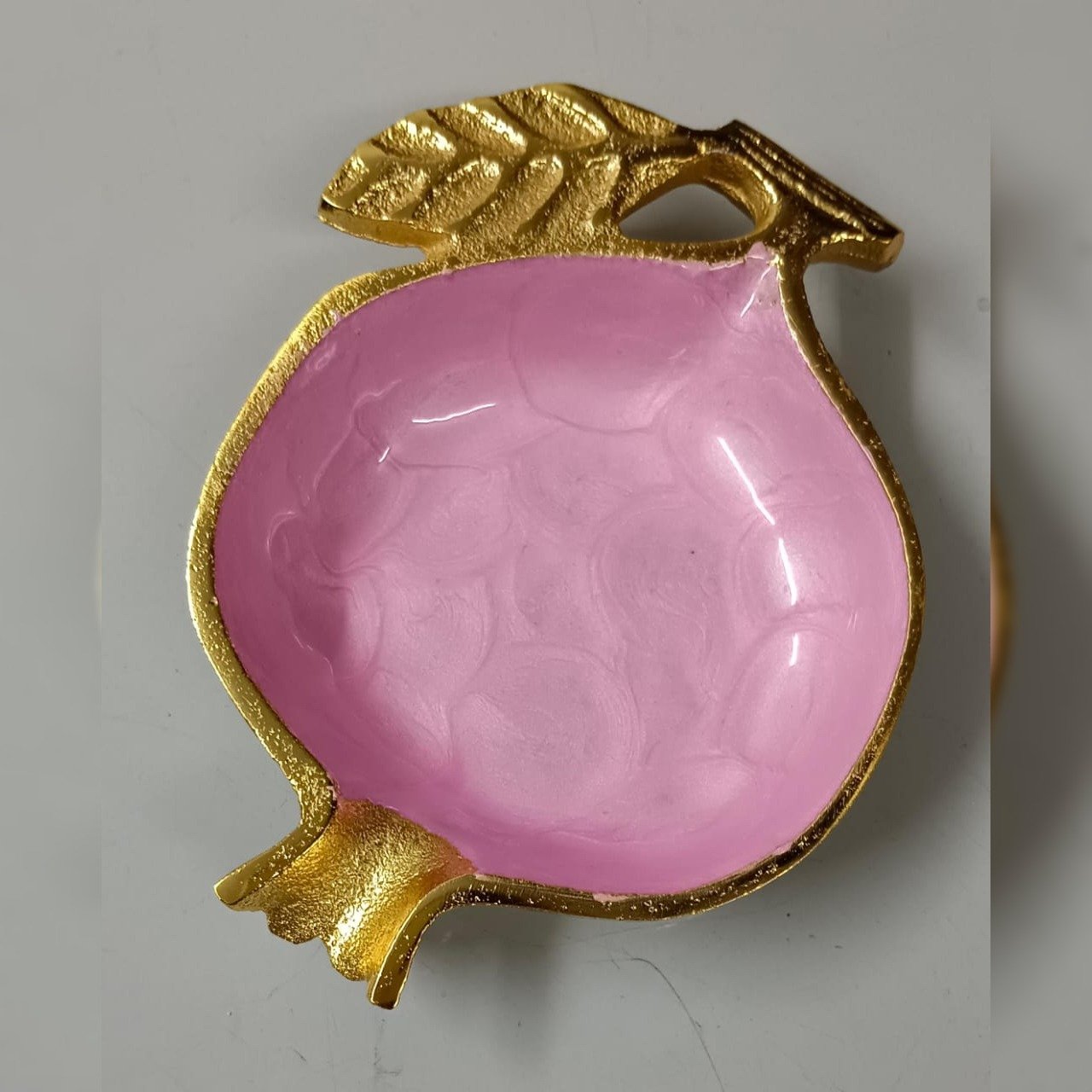 Made from high-quality aluminum, this bowl features a striking gold-finished exterior paired with a delightful pink enamel interior, creating an elegant accent for any desk, side table, or festive setting. Use it as a dry fruit holder, a tray for knick-knacks, a tealight holder, or simply as a decorative accent to brighten up living or workspaces. Its compact, versatile design is easy to pair with other decor pieces, adding a touch of handcrafted luxury wherever it’s placed.