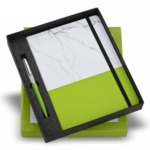 This notebook set blends utility with aesthetics, making it suitable for everyday office use while still feeling special. The durable cover, elastic closure, and premium pen enhance the user experience. It is perfect for companies looking to gift something professional, practical, and brand-friendly without being generic.