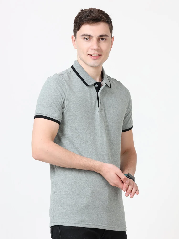 PUMA Pique Tipping Polo With Company Logo – Grey