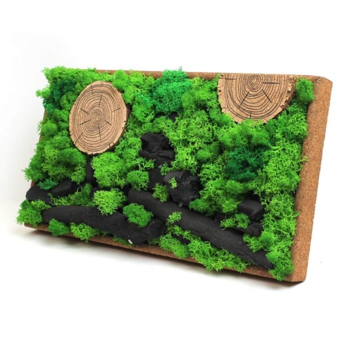 The Forest Chronicles (Panorama) is a larger version of our square model, offering a more expansive view of nature’s beauty. Designed as a wall-hanging décor piece, it features preserved moss and charcoal set on a premium cork base, creating a one-of-a-kind art piece that symbolizes growth and resilience.