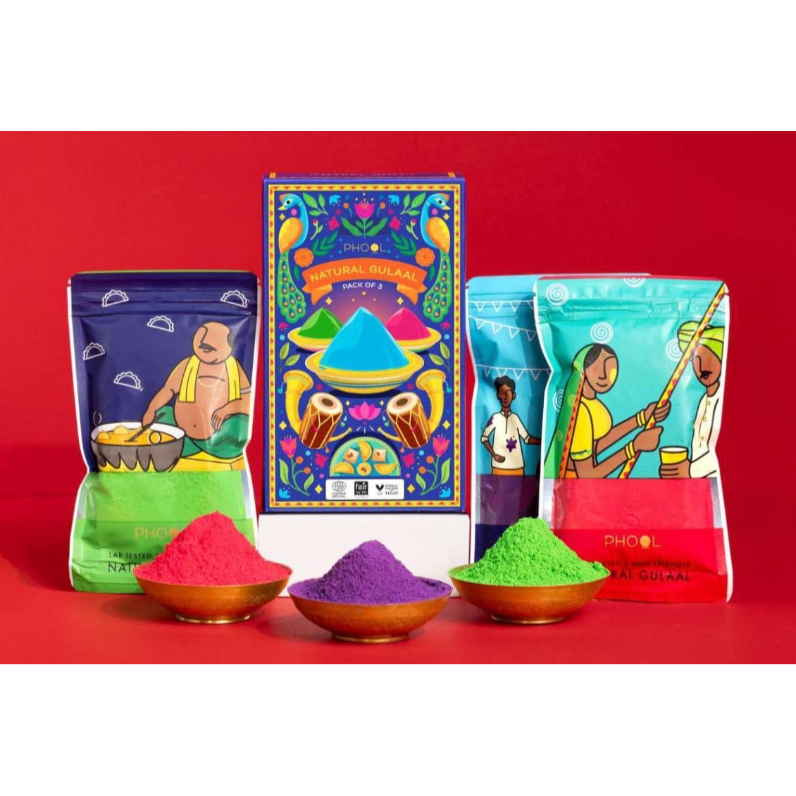 - Natural Gulaal 100gms each : Pink, Purple, Green