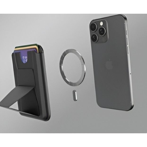 - Sleek magnetic wallet with integrated phone stand