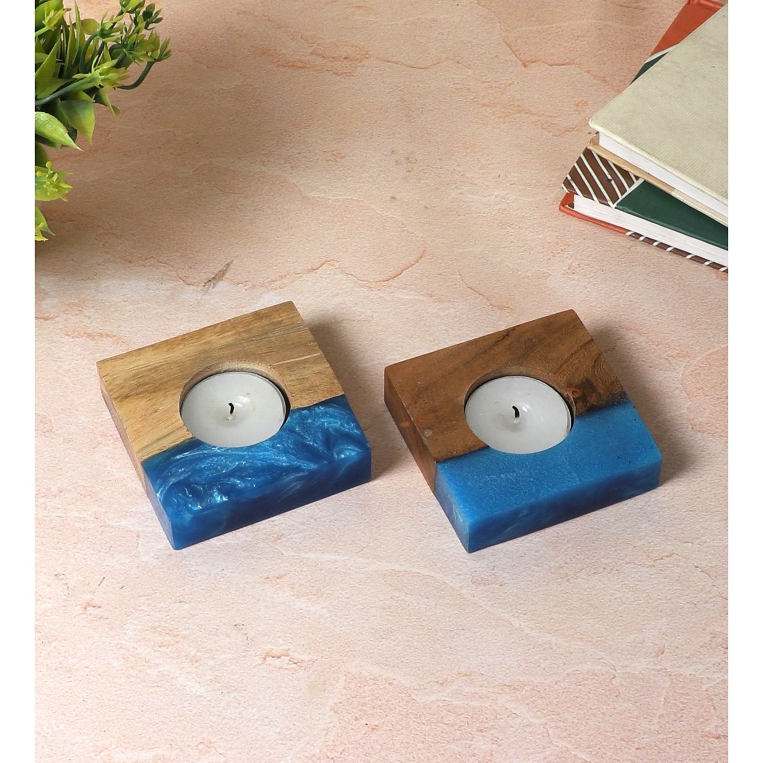 Mango Wood & Resin Tealight Holders (Set of 2)
