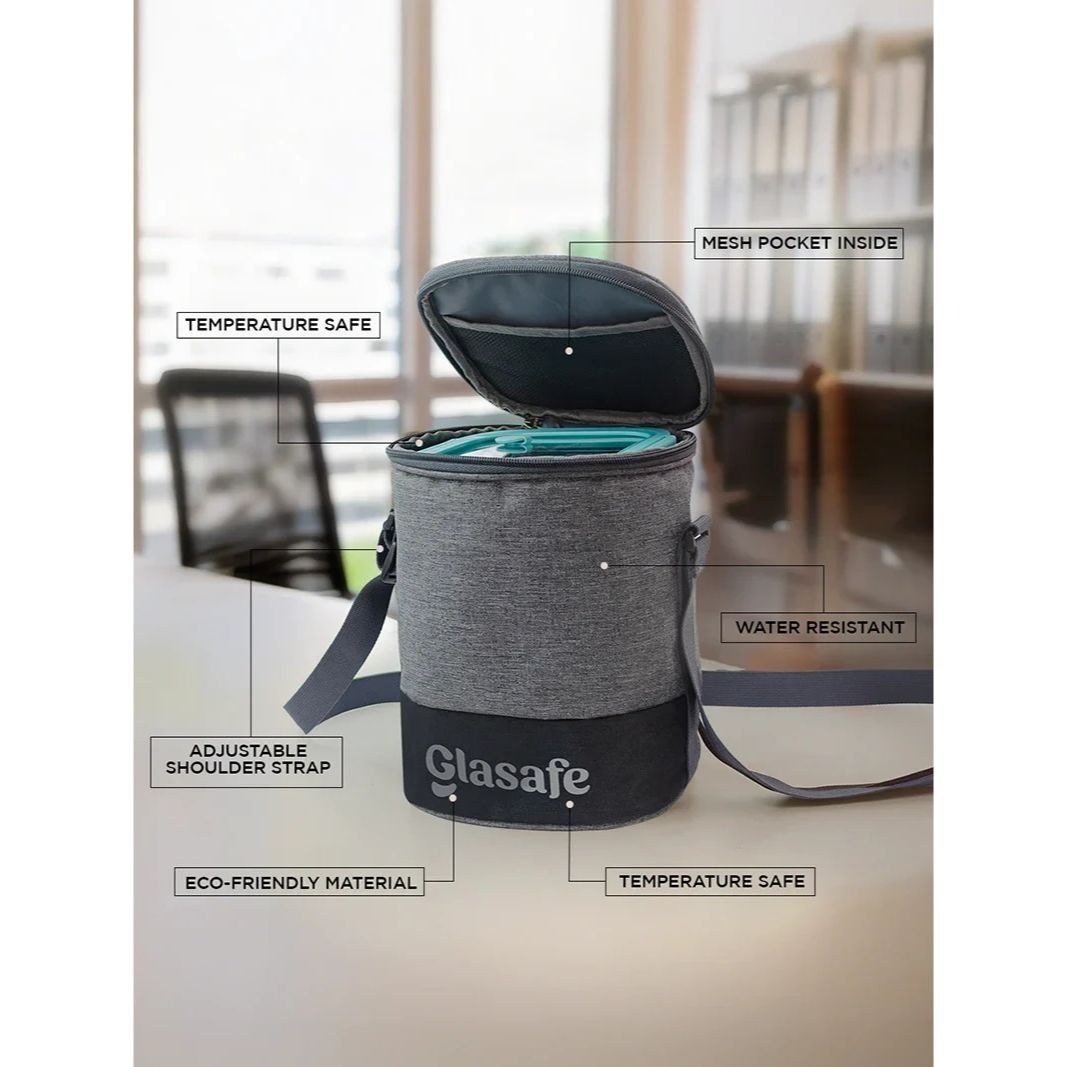 - Set of 3 leak-proof glass tiffins + 5L insulated lunch bag