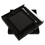 The pen feels smooth and balanced when jotting down notes or signing documents, while the wallet’s classic design keeps cards and cash organised without being bulky. The all-black finish gives both items a clean, professional look that suits any workspace or travel kit.