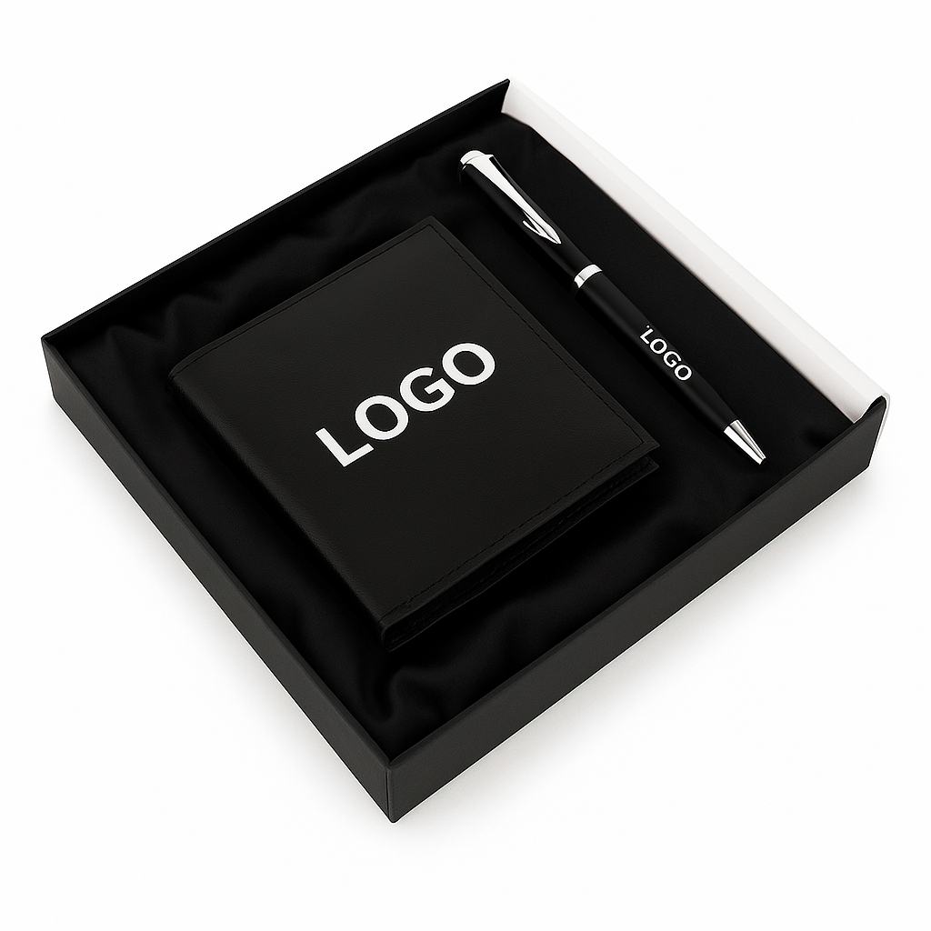 Morado Premium Black Pen & Wallet Gift Set with Company Logo