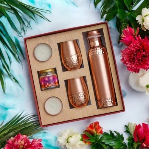Yes, Premium Hammered Copper Bottle Gift Set can be customised with your company’s logo. Please get in touch with us at (+91 9769378543) for specific customisation options.