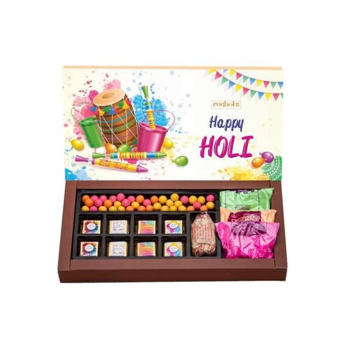 - 8 pcs Holi Special Chocolates (2 pcs each) : Paan Masala, Thandai, Orange Aura, Kesar Elaichi