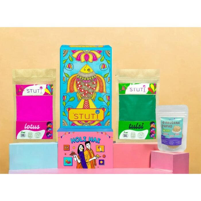 - Natural Gulaal (80g each – Tulsi, Lotus) – Skin-friendly, eco-friendly, and chemical-free colors for a safe and joyful celebration.