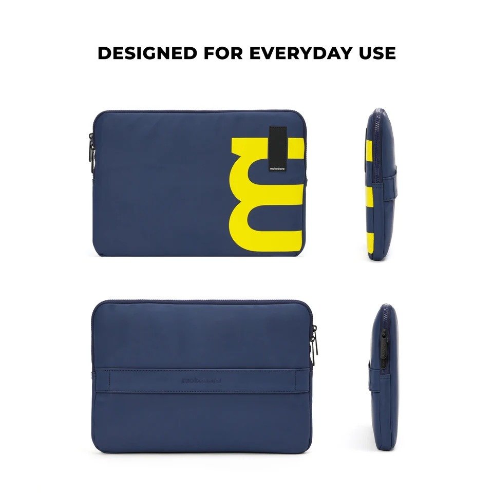 Crafted with premium water-resistant material, the Em Laptop Sleeve keeps laptops safe from unexpected spills and drizzles. Inside, its plush microsuede lining gives your laptop a soft, protective hug—preventing scratches and minor bumps. It’s designed to fit laptops up to 14 inches, providing a snug fit without adding bulk. Lightweight and compact, it slips easily into a backpack or carry-on and features a luggage sleeve at the back for easy travel. Finished with a signature “m” insignia on the front, it balances simplicity with subtle style, making it a great daily companion for commutes or remote work setups.