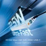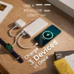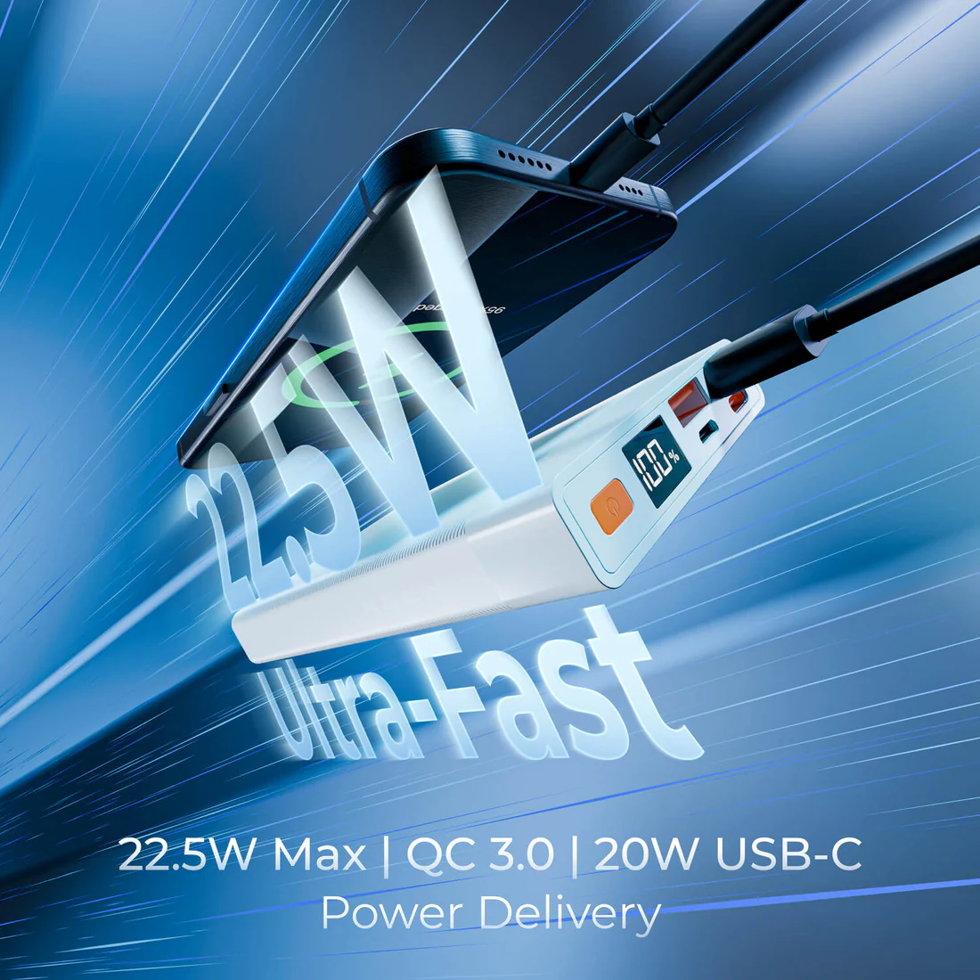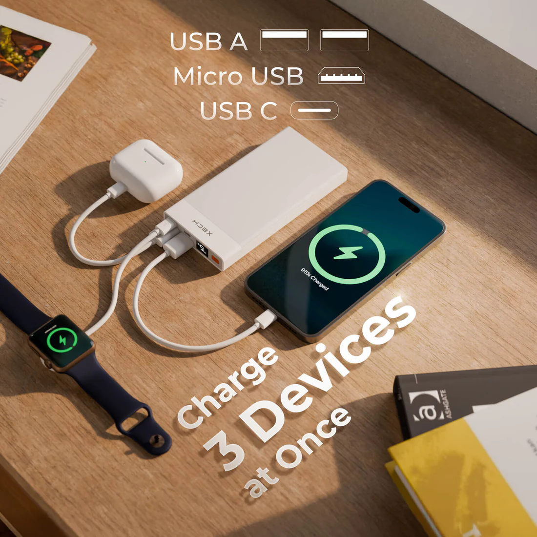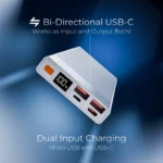 This compact Lithium Polymer power bank supports USB-C, Micro USB, and dual USB-A outputs, allowing simultaneous charging for multiple devices. Its fast-charging capabilities and lightweight design (just 225g) make it perfect for professionals, travelers, and tech-savvy users.